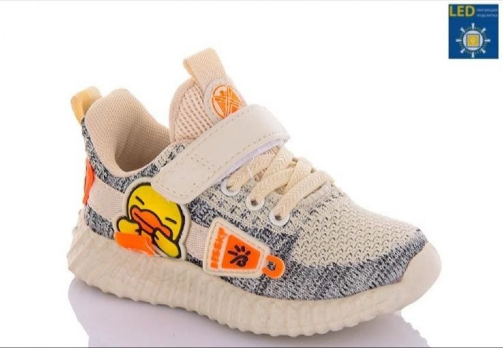 Виробник Китай. Сезон літо. Матеріал верху текстиль. Матеріал устілки екошкіра. Матеріал підкладки текстиль. ПВХ підошва. Модель на фальш шнурівці та застібці липучці. Петелька на заднику та язичку. Модель оздоблена елементом що світиться.