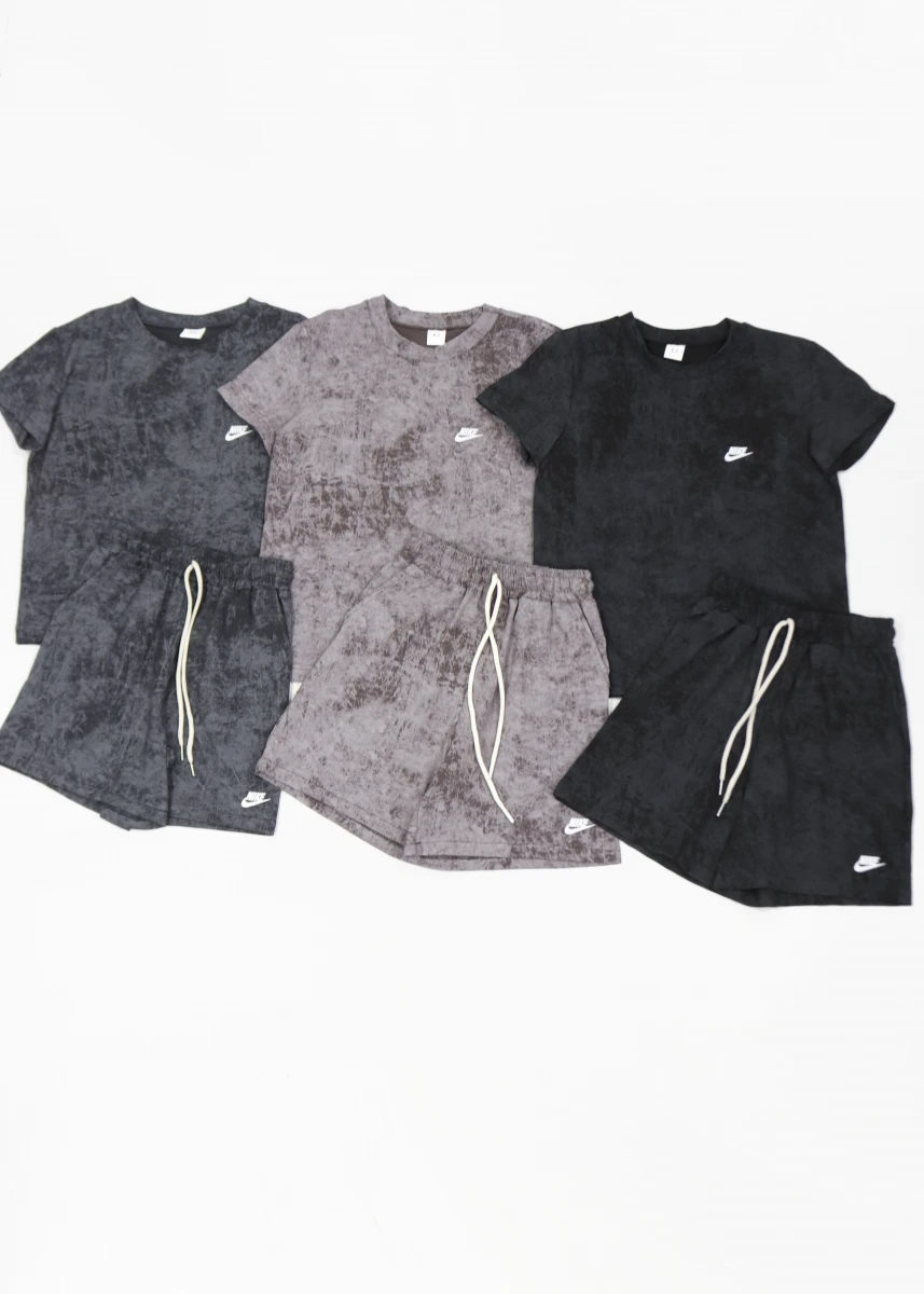 Виробник: Туреччина. Сезон:літо. Склад:80%бавовна, 15%поліестер, 5%лайкра. Однотонний. Футболка та шорти. Футболка: класична, кругла горловина, ліворуч напис:(NIKE). Шорти: пояс на резинці зі шнурівкою, дві скісні кишені, ліворуч напис:(NIKE).