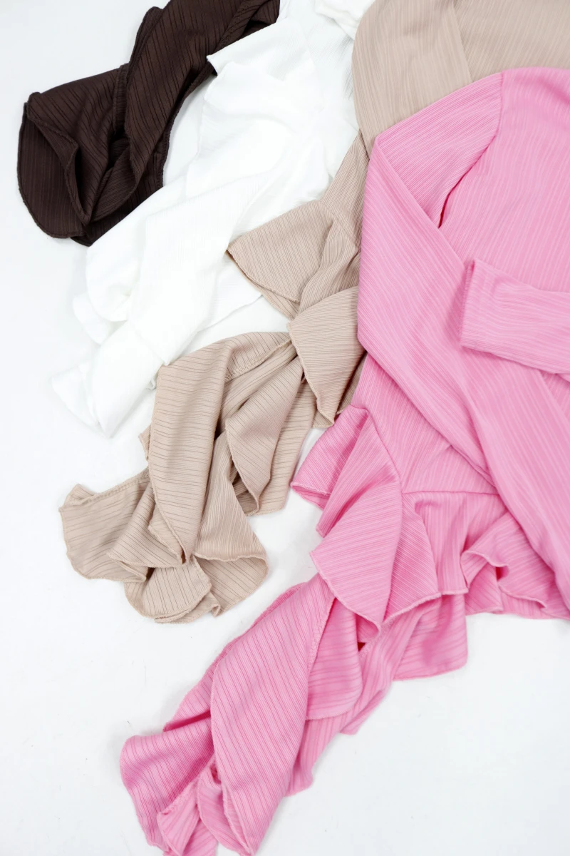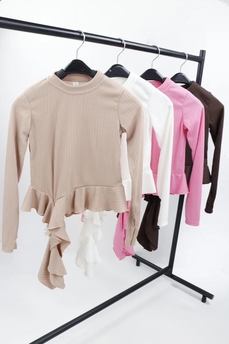 Виробник: Україна. Сезон: демі. Тканина рубчик. Однотонний. Кругла горловина . Довги, прямий рукав, який одягається на великий пальчк. Низ рюша. Спереду та ззаду рюша подовженя .
