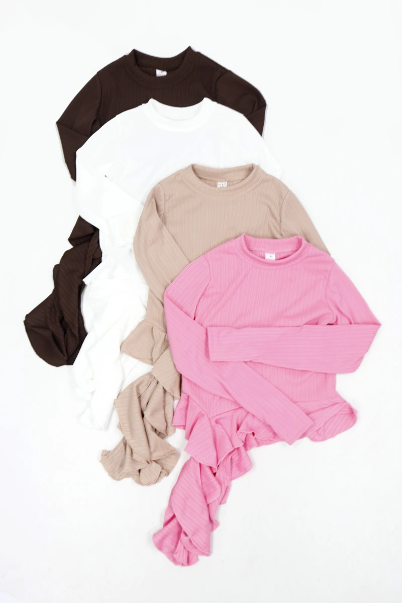Виробник: Україна. Сезон: демі. Тканина рубик. Однотонний. Кругла горловина . Довги, прямий рукав, який одягається на великий пальчк. Низ рюша. Спереду та ззаду рюша подовженя .