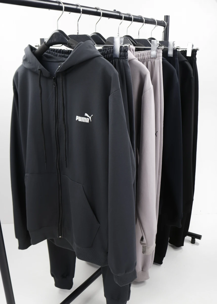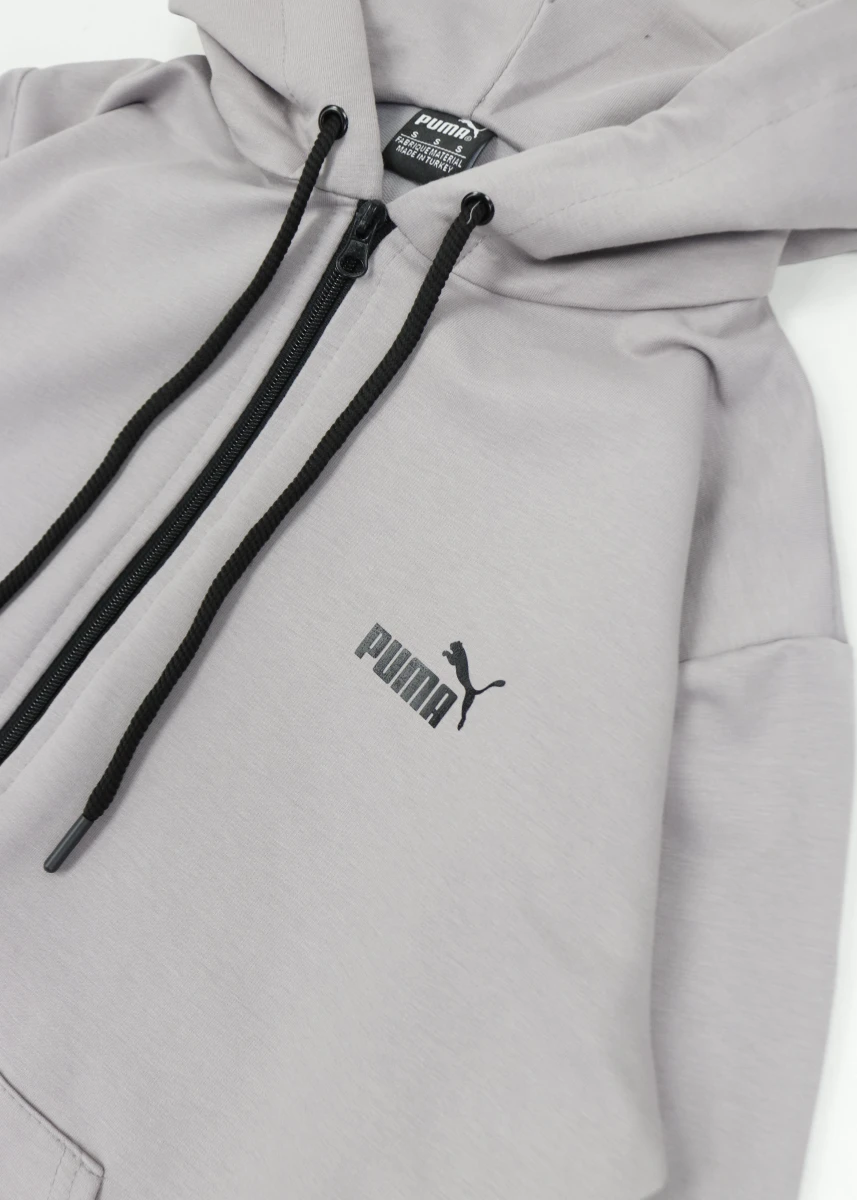 Виробник: Туреччина. Сезон: демі. Склад: 95% коттон, 5% лайкра. Однотонний. Кофта: кап'юшон на зав'язках, повністю на блискавці, кишені типу кенгуру, рукава та низ кофти на манжеті, з лівої сторони на грудях напис "Puma". Штани: пояс резинкою з шнурівкою, Скісні кишені на блискавці. Низ на манжеті.